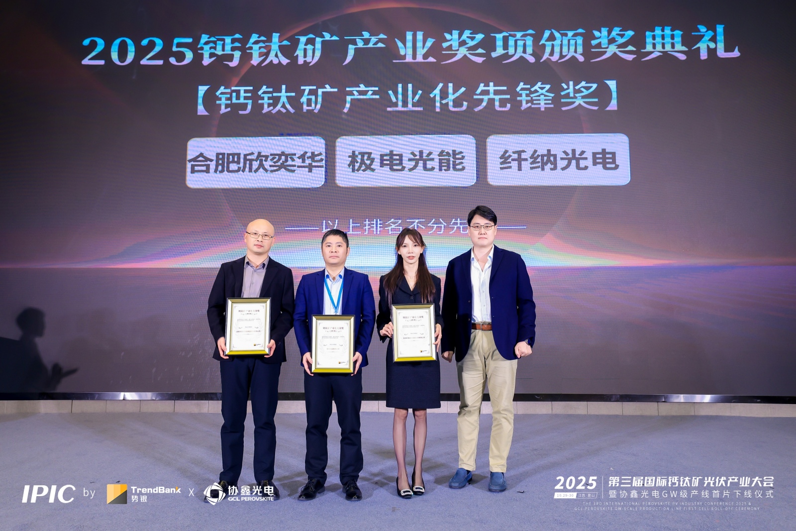 凭借在钙钛矿真空镀膜设备研发及产业化应用方面的突出贡献,欣奕华智荣获大会颁发的“钙钛矿产业化先锋奖”。该奖项旨在表彰在钙钛矿光伏产业化进程中发挥关键作用、推动技术落地与产业进步的优秀企业。